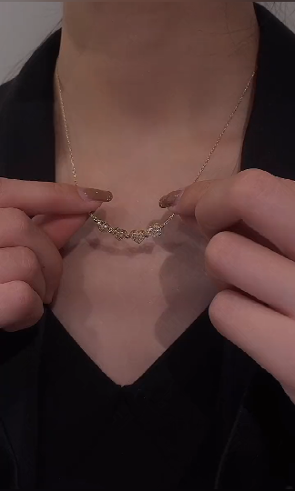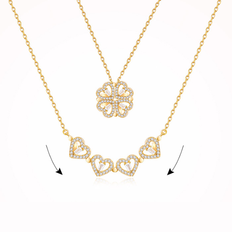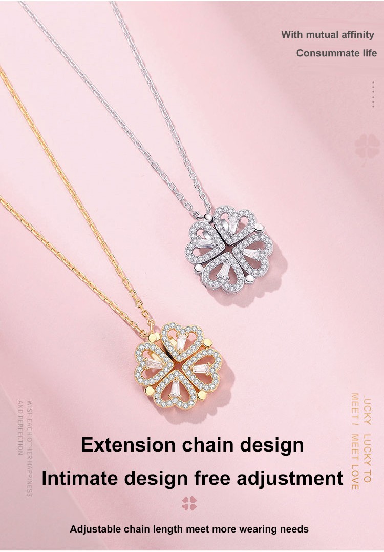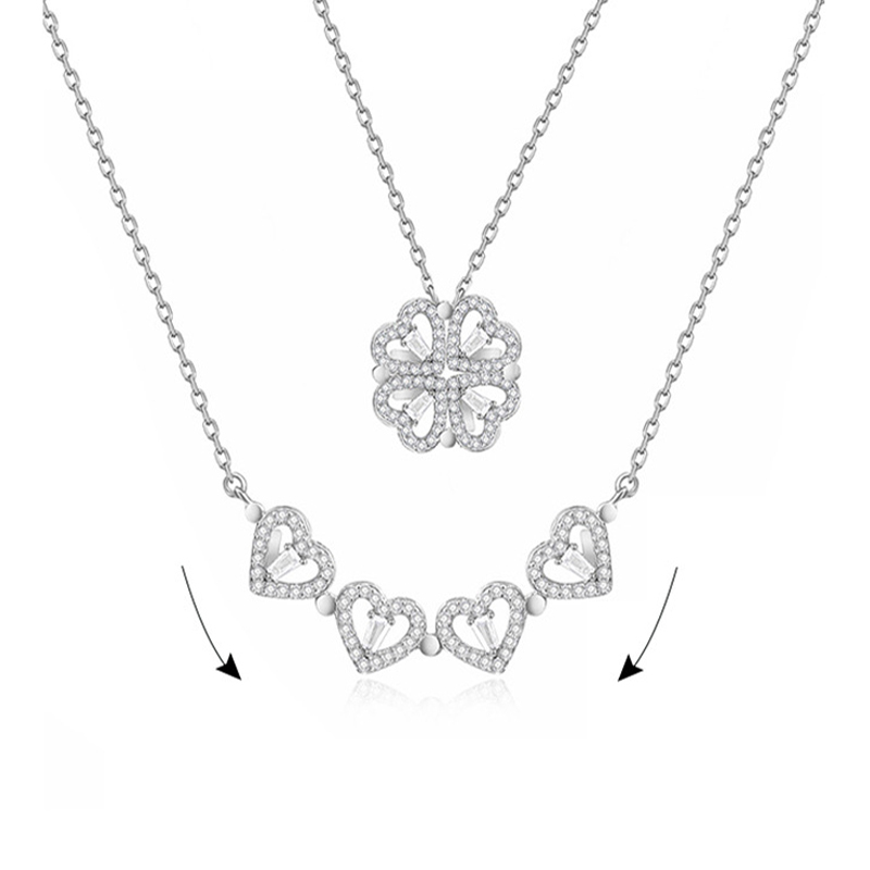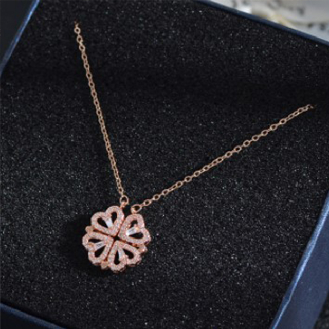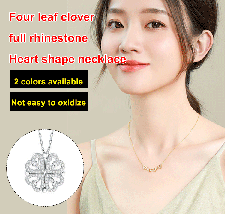HFH- Four Leaf Clover Full Rhinestone Heart Shape Necklace